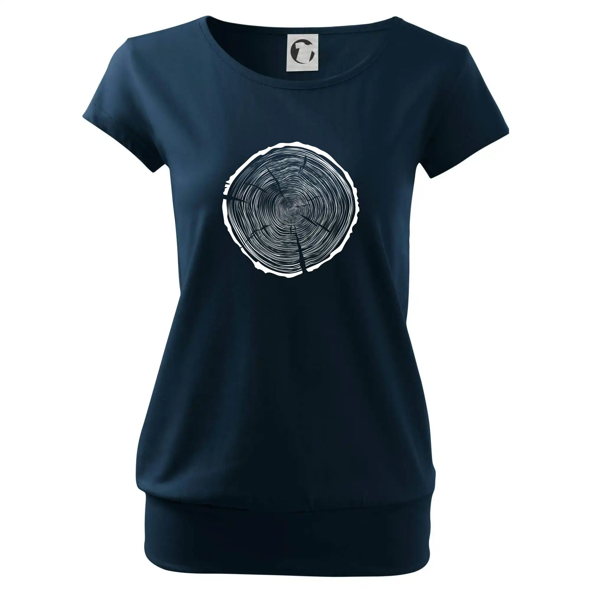 Trendové dámske tričko s veľmi krátkym rukávom, voľnejšieho strihu, v dolnom kraji všité do širokého lemu. Okrúhly priekrčník s úzkym lemom zo zhodného materiálu.