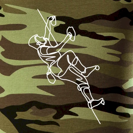 Tričko strednej gramáže vo farbách camouflage. Strih s bočnými švami. Lem priekrčníku z rebrového úpletu s prídavkom 5% elastanu. Vnútorná časť zadného priekrčníka začistená páskou vo farbe camouflage.