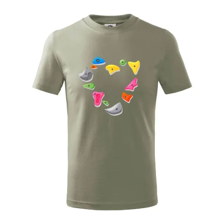 Tiko pro horolezce, horolezkyni nebo i horolezčátko. Tričko s motivem chytů a úchytů, pokud máš ve svém okolí někoho, kdo rád leze na umělé stěny, překonává výšky a boulderinguje.