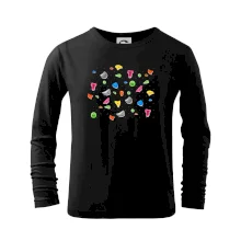 Tiko pro horolezce, horolezkyni nebo i horolezčátko. Tričko s motivem chytů a úchytů, pokud máš ve svém okolí někoho, kdo rád leze na umělé stěny, překonává výšky a boulderinguje.