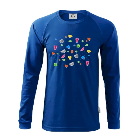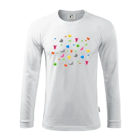 Tiko pro horolezce, horolezkyni nebo i horolezčátko. Tričko s motivem chytů a úchytů, pokud máš ve svém okolí někoho, kdo rád leze na umělé stěny, překonává výšky a boulderinguje.