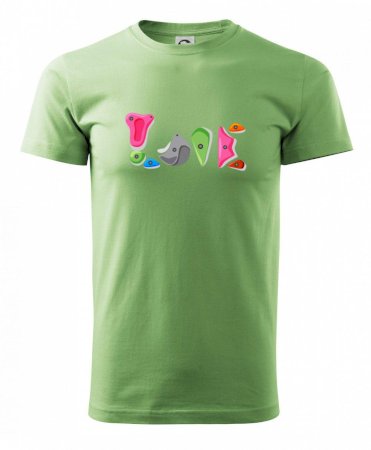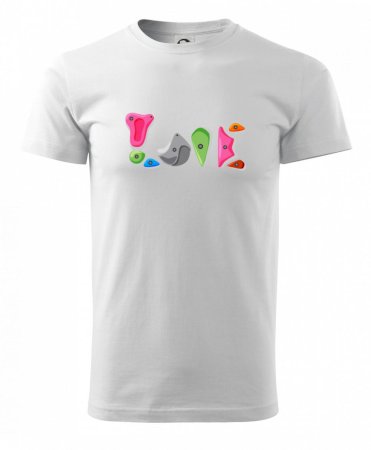 Tiko pro horolezce, horolezkyni nebo i horolezčátko. Tričko s motivem chytů a úchytů, pokud máš ve svém okolí někoho, kdo rád leze na umělé stěny, překonává výšky a boulderinguje.