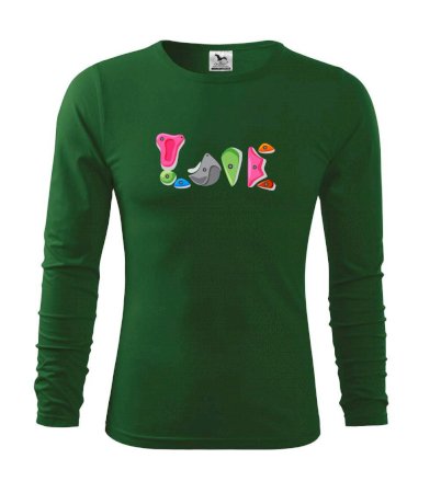 Tiko pro horolezce, horolezkyni nebo i horolezčátko. Tričko s motivem chytů a úchytů, pokud máš ve svém okolí někoho, kdo rád leze na umělé stěny, překonává výšky a boulderinguje.