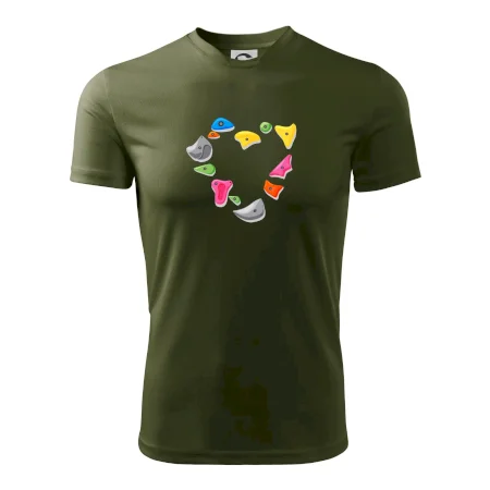 Tiko pro horolezce, horolezkyni nebo i horolezčátko. Tričko s motivem chytů a úchytů, pokud máš ve svém okolí někoho, kdo rád leze na umělé stěny, překonává výšky a boulderinguje.