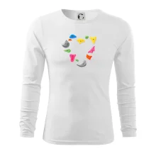 Tiko pro horolezce, horolezkyni nebo i horolezčátko. Tričko s motivem chytů a úchytů, pokud máš ve svém okolí někoho, kdo rád leze na umělé stěny, překonává výšky a boulderinguje.