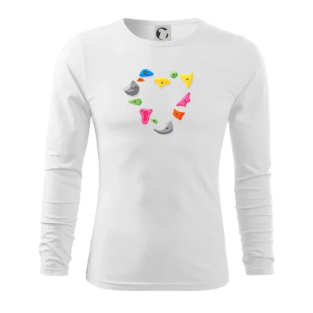 Tiko pro horolezce, horolezkyni nebo i horolezčátko. Tričko s motivem chytů a úchytů, pokud máš ve svém okolí někoho, kdo rád leze na umělé stěny, překonává výšky a boulderinguje.
