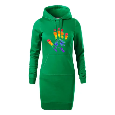 Dámske mikinové šaty MALFINI Snap 419 sú ideálnou voľbou pre ženy, ktoré hľadajú pohodlný a štýlový kúsok na voľný čas alebo každodenné nosenie. Ľahko vypasovaný strih s bočnými švami podčiarkuje ženskú siluetu, zatiaľ čo kapucňa s podšívkou a sťahovacou šnúrkou dodáva ležérny vzhľad. Šaty majú dĺžku nad kolená a sú vybavené našitým vreckom v štýle „klokanky“. Materiál je mäkký a príjemný na dotyk grâce à smesi bavlny a polyesteru s nepočesanou vnútornou stranou.