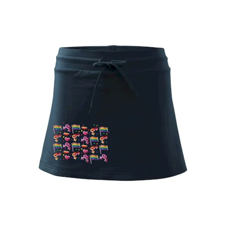 Dámska kraťasová sukňa MALFINI Two in One 604 je perfektnou kombináciou sukne a šortiek, ideálna na šport, voľný čas alebo ležérne nosenie. Vďaka prídavku elastanu si sukňa zachováva tvar a ponúka pohodlie pri pohybe. Krátky strih do tvaru „A“ a široký elastický pás so sťahovacou šnúrkou zabezpečujú voľnosť a prispôsobenie.