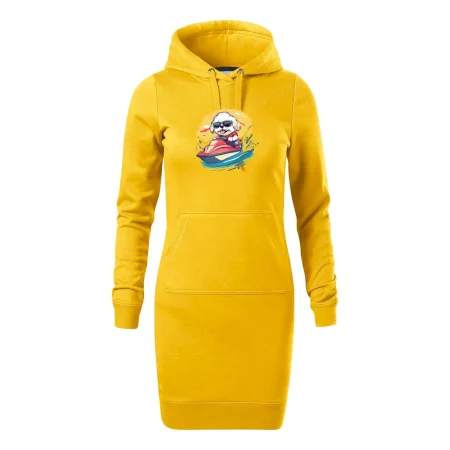 Dámske mikinové šaty MALFINI Snap 419 sú ideálnou voľbou pre ženy, ktoré hľadajú pohodlný a štýlový kúsok na voľný čas alebo každodenné nosenie. Ľahko vypasovaný strih s bočnými švami podčiarkuje ženskú siluetu, zatiaľ čo kapucňa s podšívkou a sťahovacou šnúrkou dodáva ležérny vzhľad. Šaty majú dĺžku nad kolená a sú vybavené našitým vreckom v štýle „klokanky“. Materiál je mäkký a príjemný na dotyk grâce à smesi bavlny a polyesteru s nepočesanou vnútornou stranou.