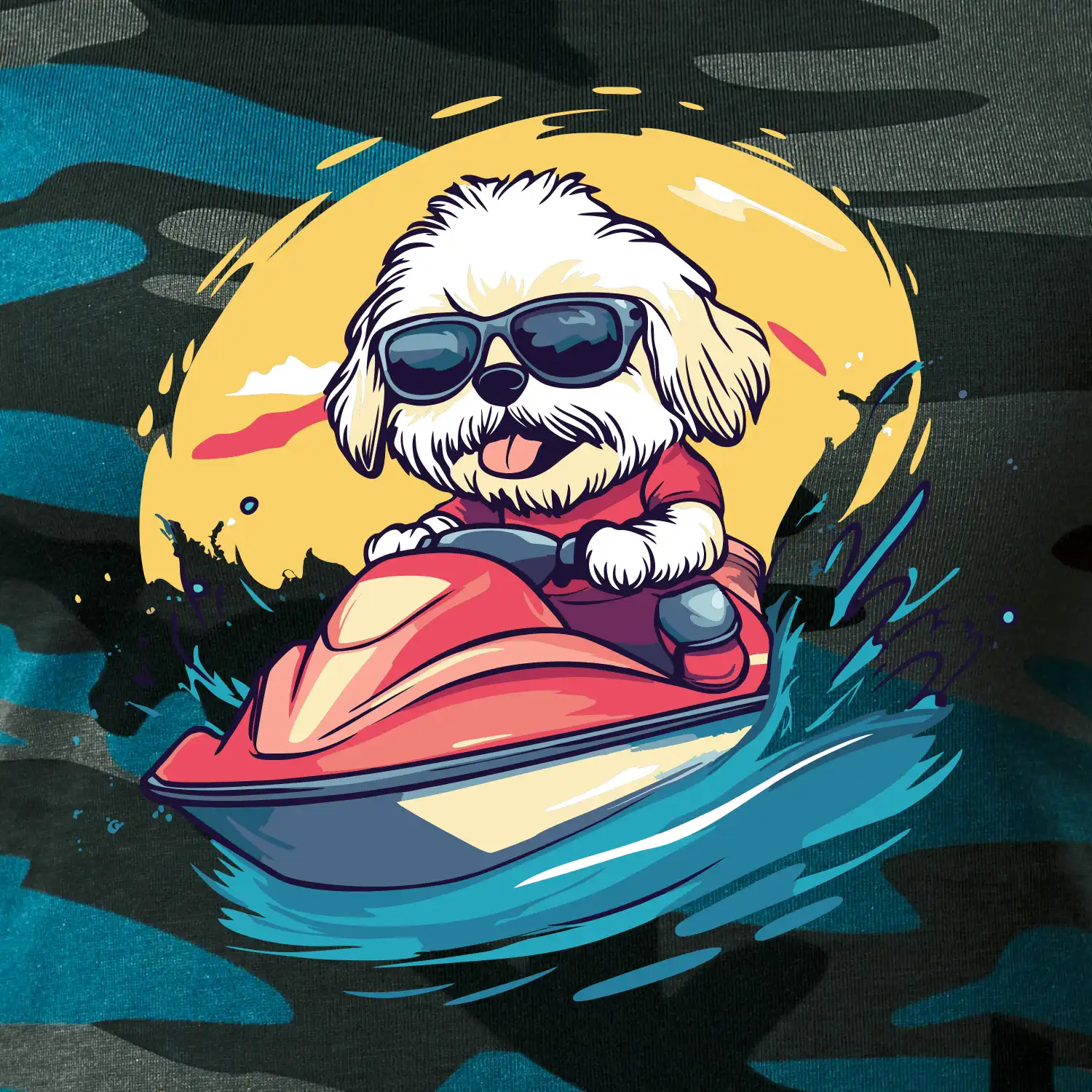 Lhasa Apso na vodnom skútri