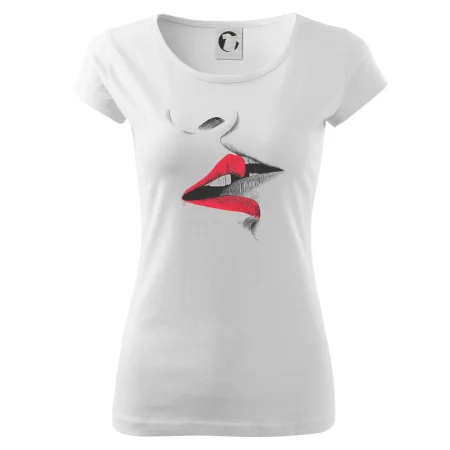 Tričko pre zamilovaných, kde sú ako hlavný motív bozkávajúce sa pery. Bozk na tričku je vhodný darček pre zamilovaný pár napríklad k Valentínu. Bozk vyzerá ako skutočný, tak kúp toto tričko svojej milej a bozkávanie môže preskočiť z trička do skutočnosti. .