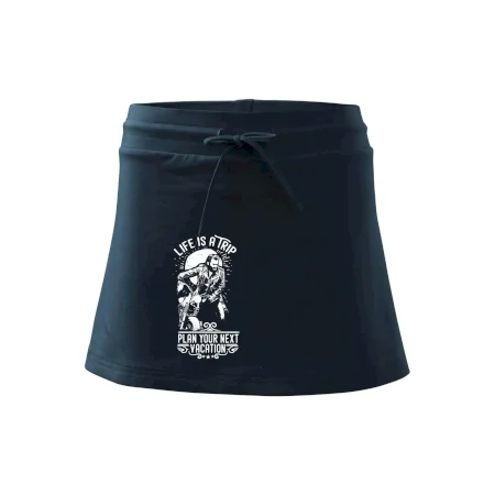 Dámska kraťasová sukňa MALFINI Two in One 604 je perfektnou kombináciou sukne a šortiek, ideálna na šport, voľný čas alebo ležérne nosenie. Vďaka prídavku elastanu si sukňa zachováva tvar a ponúka pohodlie pri pohybe. Krátky strih do tvaru „A“ a široký elastický pás so sťahovacou šnúrkou zabezpečujú voľnosť a prispôsobenie.