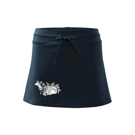 Dámska kraťasová sukňa MALFINI Two in One 604 je perfektnou kombináciou sukne a šortiek, ideálna na šport, voľný čas alebo ležérne nosenie. Vďaka prídavku elastanu si sukňa zachováva tvar a ponúka pohodlie pri pohybe. Krátky strih do tvaru „A“ a široký elastický pás so sťahovacou šnúrkou zabezpečujú voľnosť a prispôsobenie.