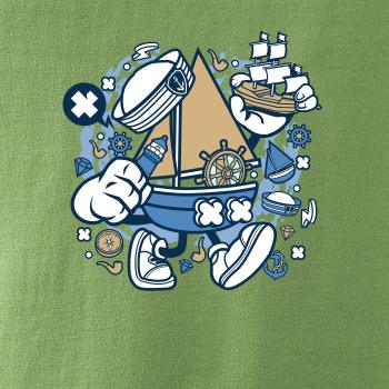 Tričko pre námorníka, na ktorom je kreslená plachetnica. Loďka v kombinácií, s týmto tričko je ideálny partner. tričko pre vodáka je skvelý darček k vodu.
