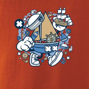 Tričko pre námorníka, na ktorom je kreslená plachetnica. Loďka v kombinácií, s týmto tričko je ideálny partner. tričko pre vodáka je skvelý darček k vodu.