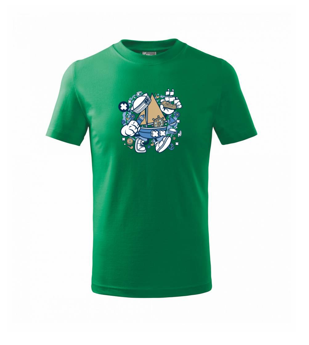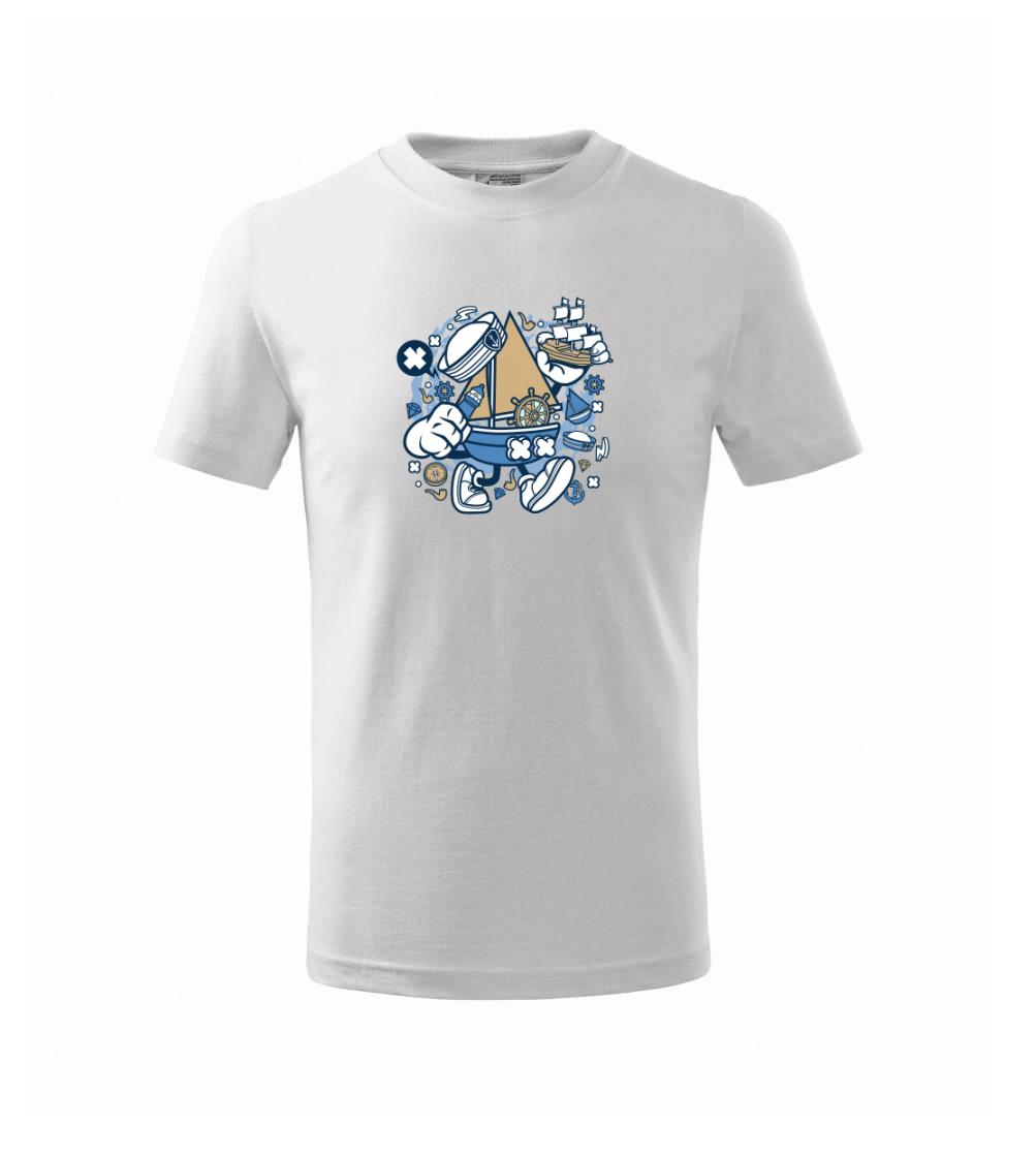 Tričko pre námorníka, na ktorom je kreslená plachetnica. Loďka v kombinácií, s týmto tričko je ideálny partner. tričko pre vodáka je skvelý darček k vodu.