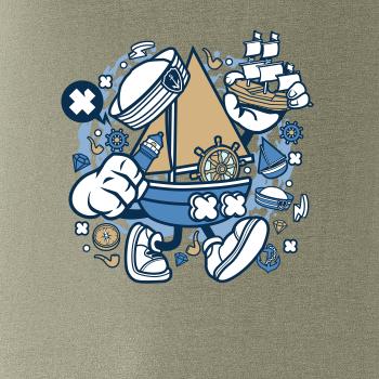 Tričko pre námorníka, na ktorom je kreslená plachetnica. Loďka v kombinácií, s týmto tričko je ideálny partner. tričko pre vodáka je skvelý darček k vodu.