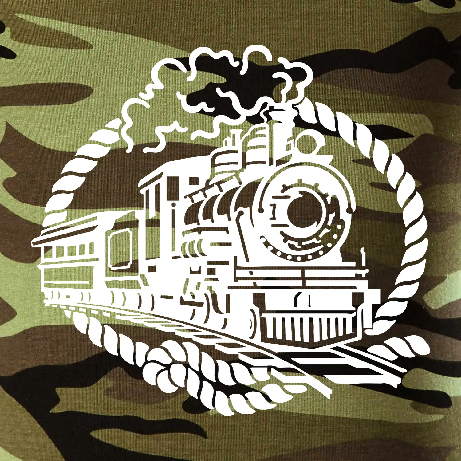 Tričko strednej gramáže vo farbách camouflage. Strih s bočnými švami. Lem priekrčníku z rebrového úpletu s prídavkom 5% elastanu. Vnútorná časť zadného priekrčníka začistená páskou vo farbe camouflage.