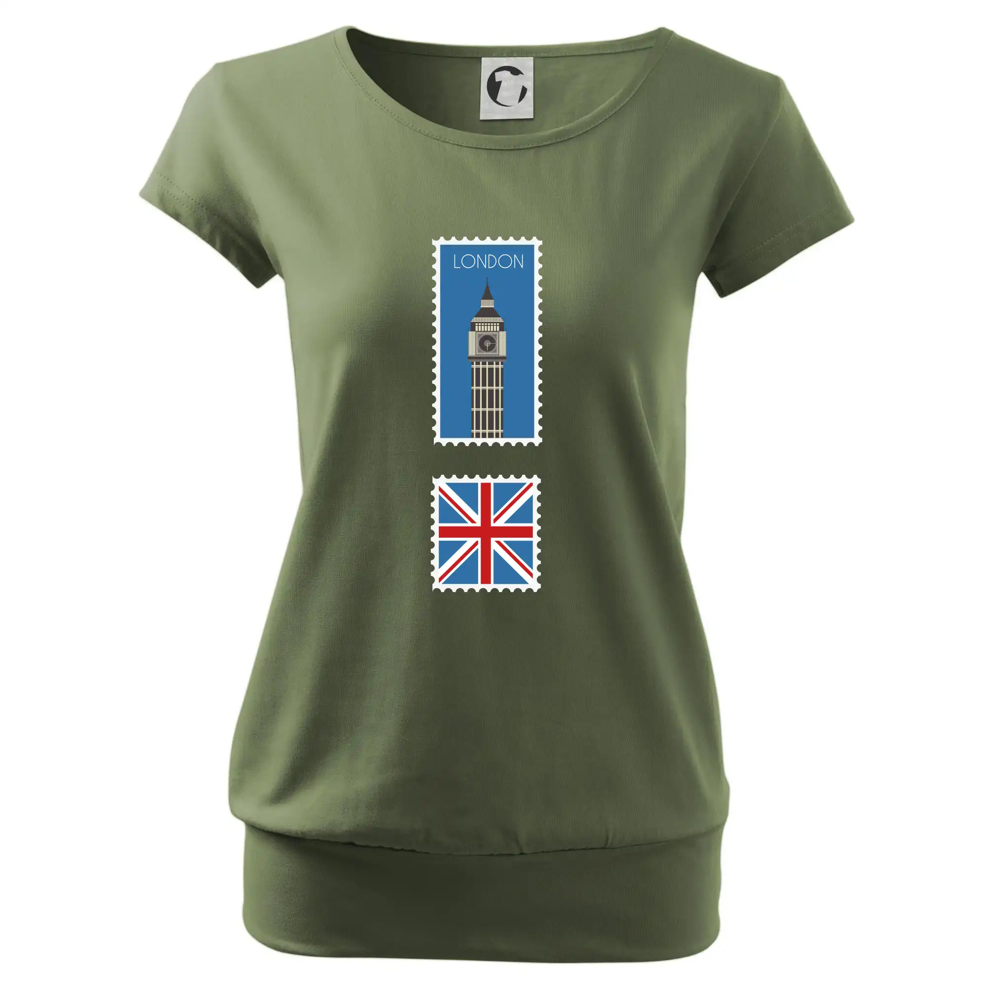 Trendové dámske tričko s veľmi krátkym rukávom, voľnejšieho strihu, v dolnom kraji všité do širokého lemu. Okrúhly priekrčník s úzkym lemom zo zhodného materiálu.