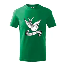 Tričko s krásnym motívom pre radosť, tričko s holubicou, tričko s nápisom LOVE.
