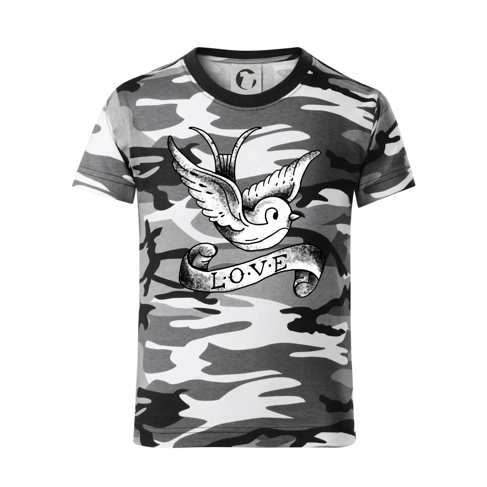 Tričko s krásnym motívom pre radosť, tričko s holubicou, tričko s nápisom LOVE.