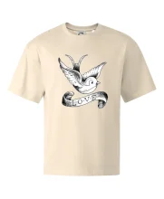 Tričko s krásnym motívom pre radosť, tričko s holubicou, tričko s nápisom LOVE.