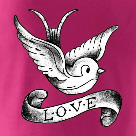 Tričko s krásnym motívom pre radosť, tričko s holubicou, tričko s nápisom LOVE.