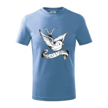 Tričko s krásnym motívom pre radosť, tričko s holubicou, tričko s nápisom LOVE.
