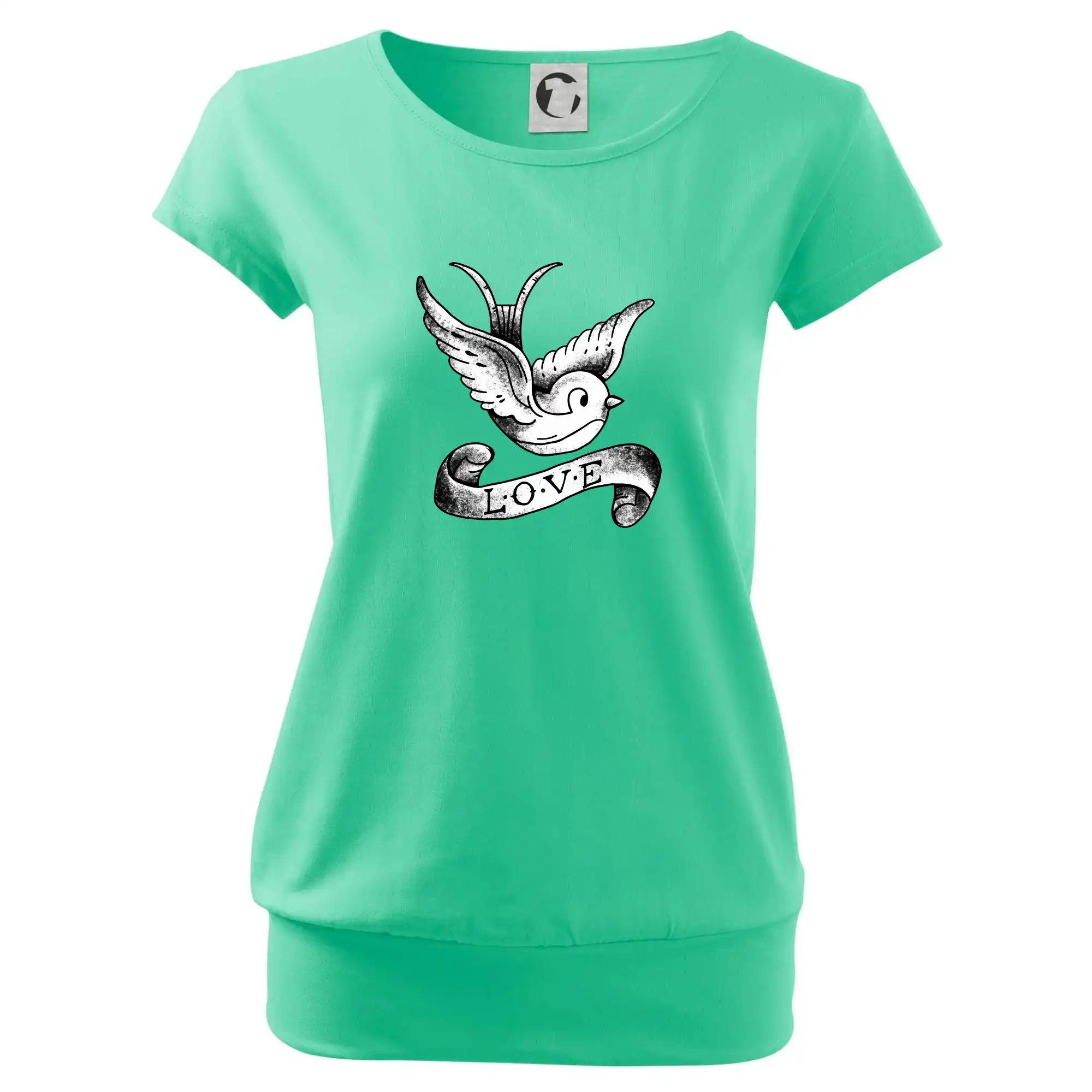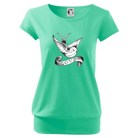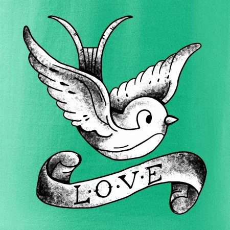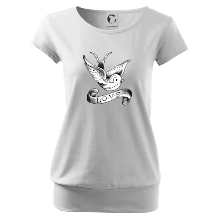 Tričko s krásnym motívom pre radosť, tričko s holubicou, tričko s nápisom LOVE.