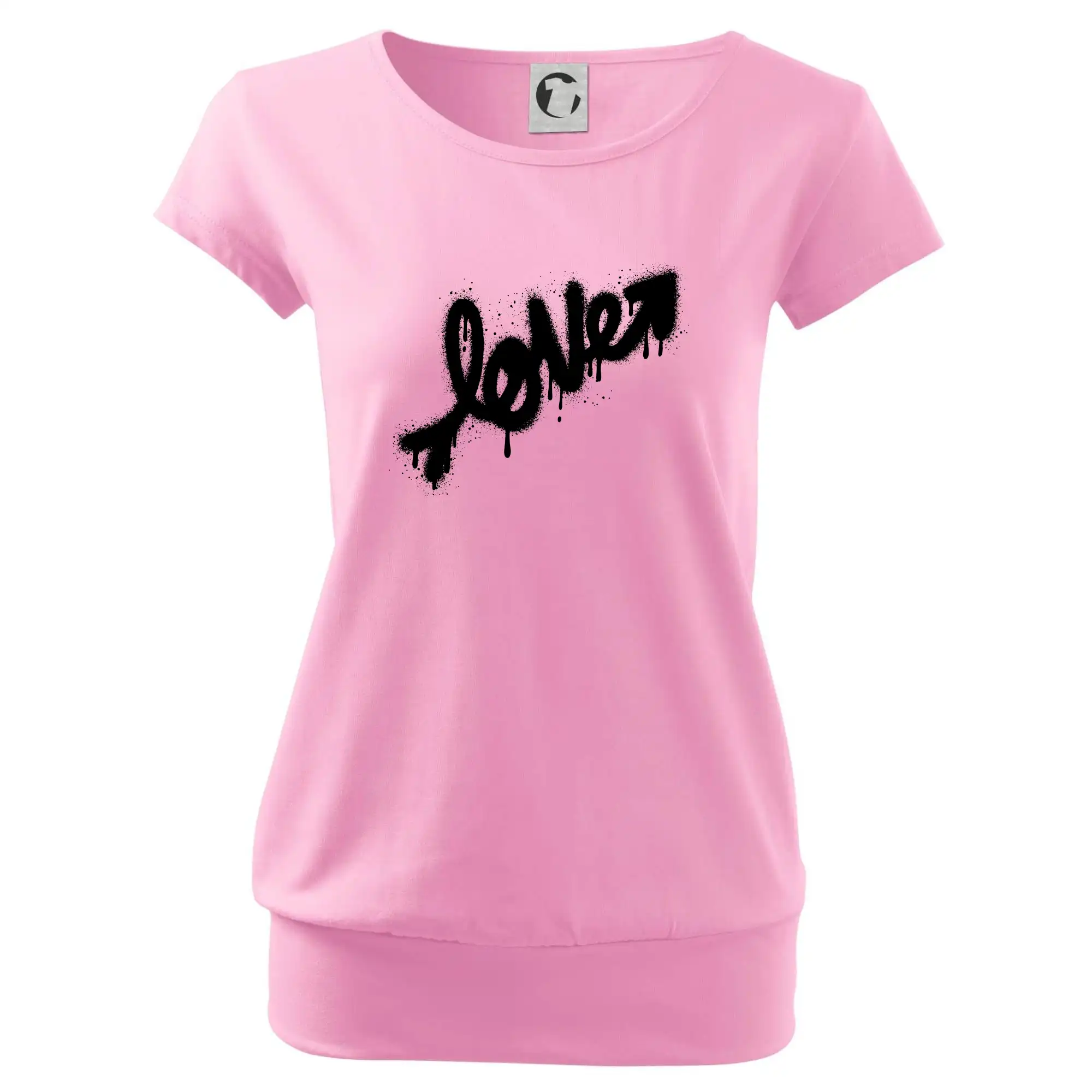 Trendové dámske tričko s veľmi krátkym rukávom, voľnejšieho strihu, v dolnom kraji všité do širokého lemu. Okrúhly priekrčník s úzkym lemom zo zhodného materiálu.