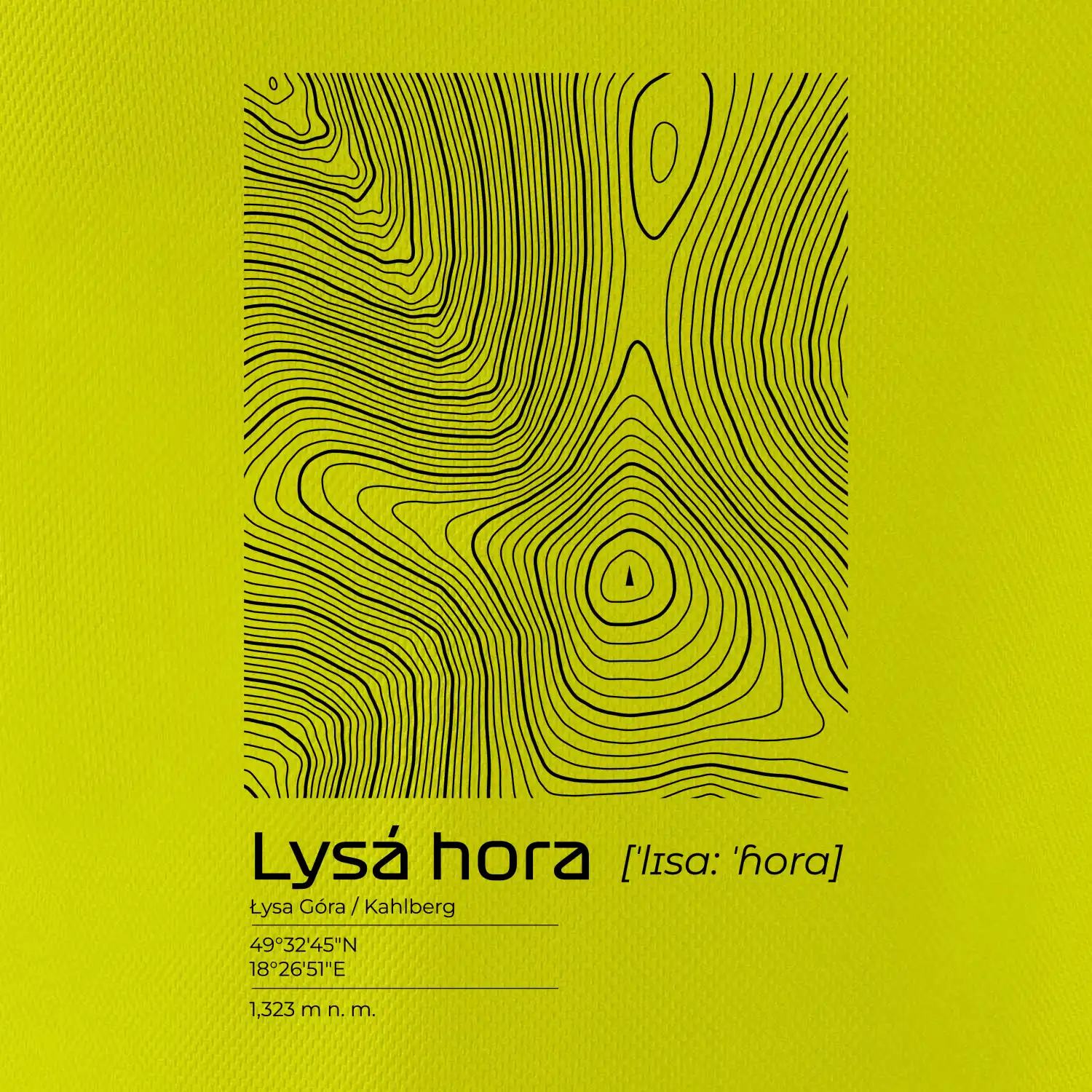 Lysá hora - vrstevnice v obdĺžniku