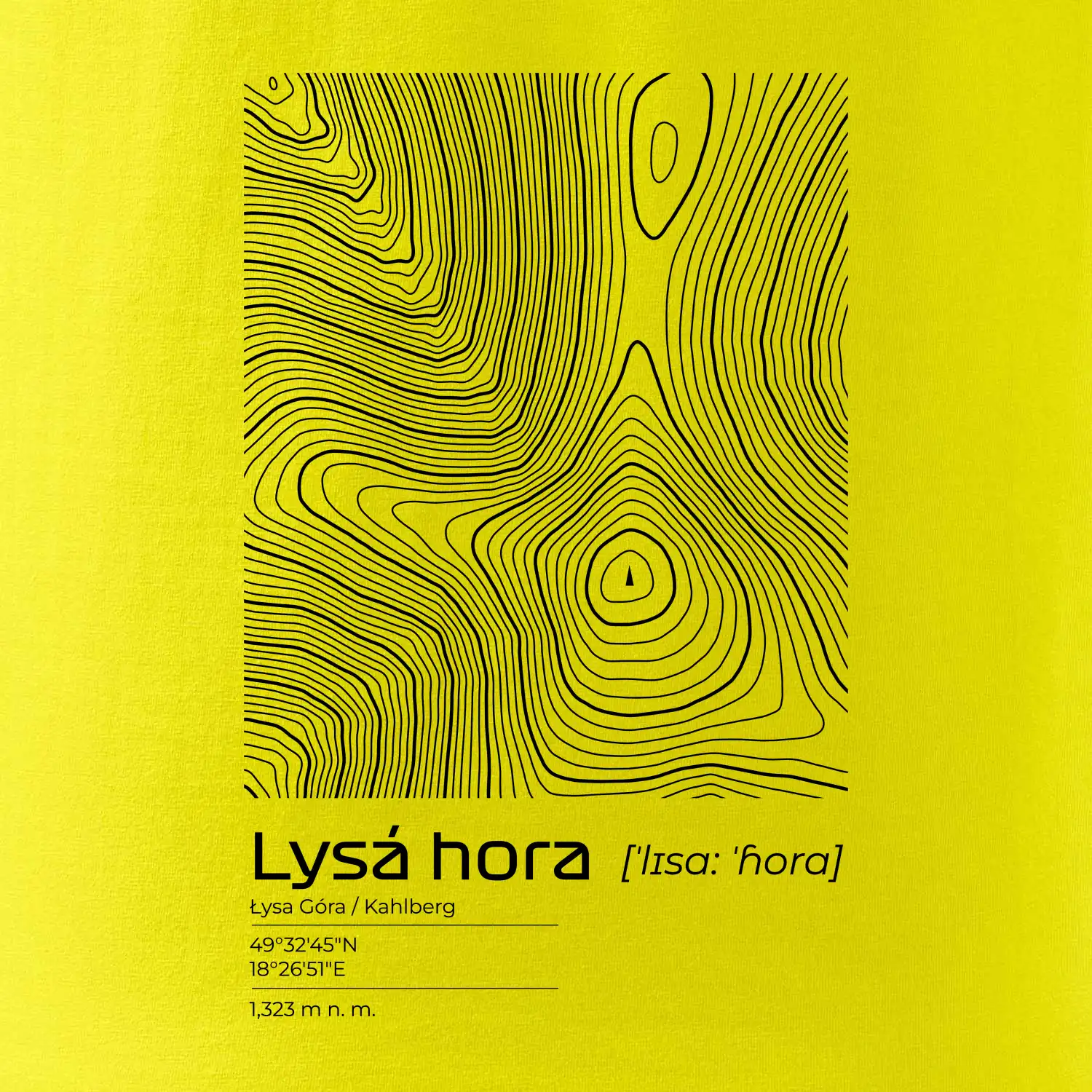 Lysá hora - vrstevnice v obdĺžniku