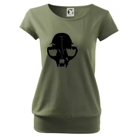 Trendové dámske tričko s veľmi krátkym rukávom, voľnejšieho strihu, v dolnom kraji všité do širokého lemu. Okrúhly priekrčník s úzkym lemom zo zhodného materiálu.