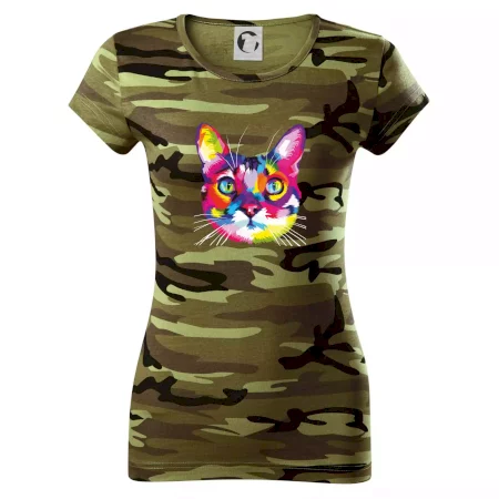 Mačka plná farieb a radosti, teraz na Tvojom tričku. U nás na Myshirt si vyberie naozaj každý.