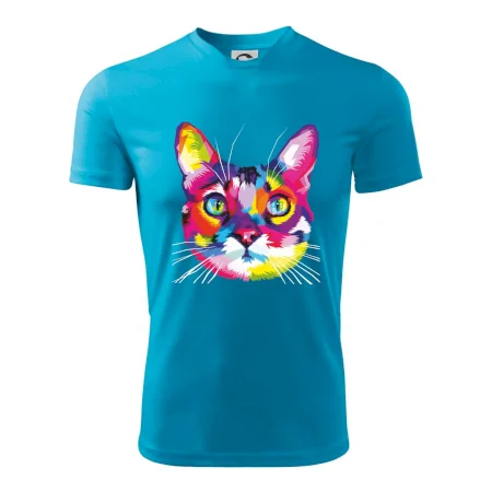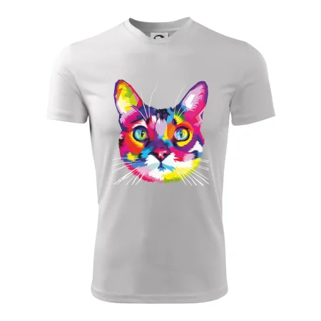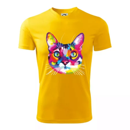 Mačka plná farieb a radosti, teraz na Tvojom tričku. U nás na Myshirt si vyberie naozaj každý.