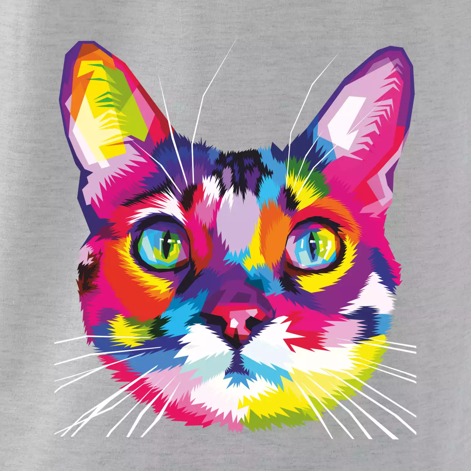 Mačka plná farieb a radosti, teraz na Tvojom tričku. U nás na Myshirt si vyberie naozaj každý.