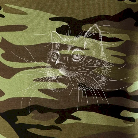 Tričko strednej gramáže vo farbách camouflage. Strih s bočnými švami. Lem priekrčníku z rebrového úpletu s prídavkom 5% elastanu. Vnútorná časť zadného priekrčníka začistená páskou vo farbe camouflage.