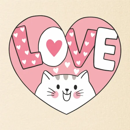 Mačka love - ružové srdce