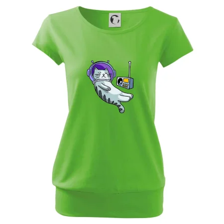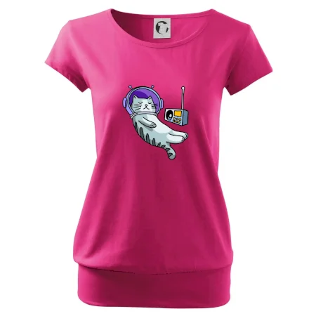 Trendové dámske tričko s veľmi krátkym rukávom, voľnejšieho strihu, v dolnom kraji všité do širokého lemu. Okrúhly priekrčník s úzkym lemom zo zhodného materiálu.