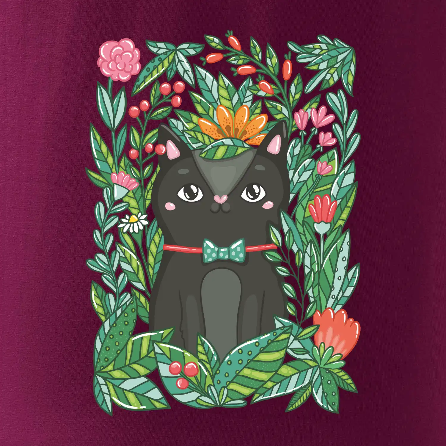 Mačka s kvetmi maľované