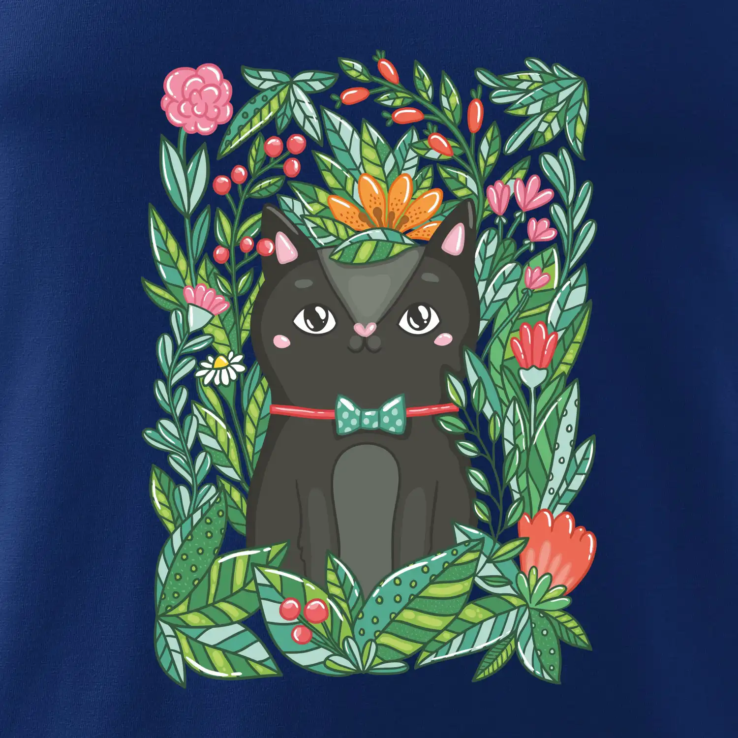 Mačka s kvetmi maľované