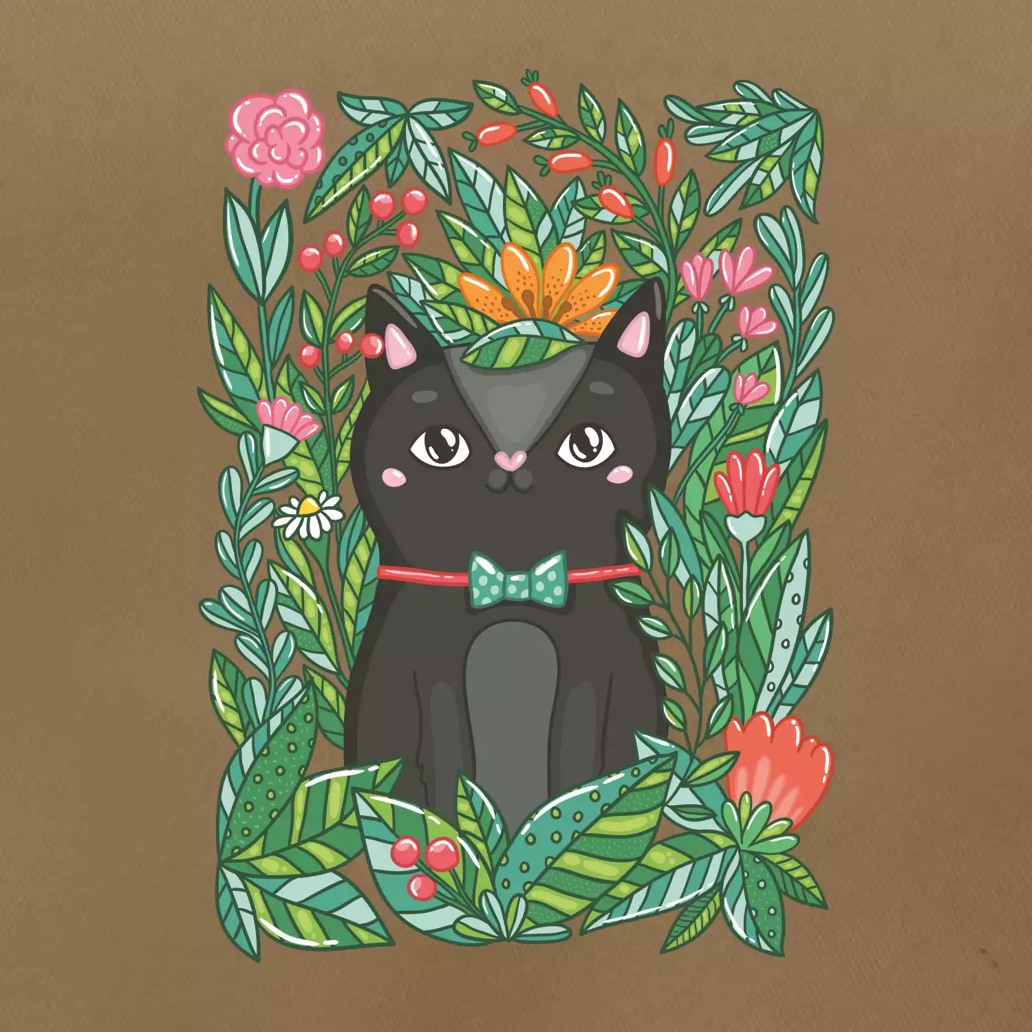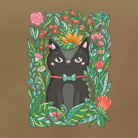 Mačka s kvetmi maľované