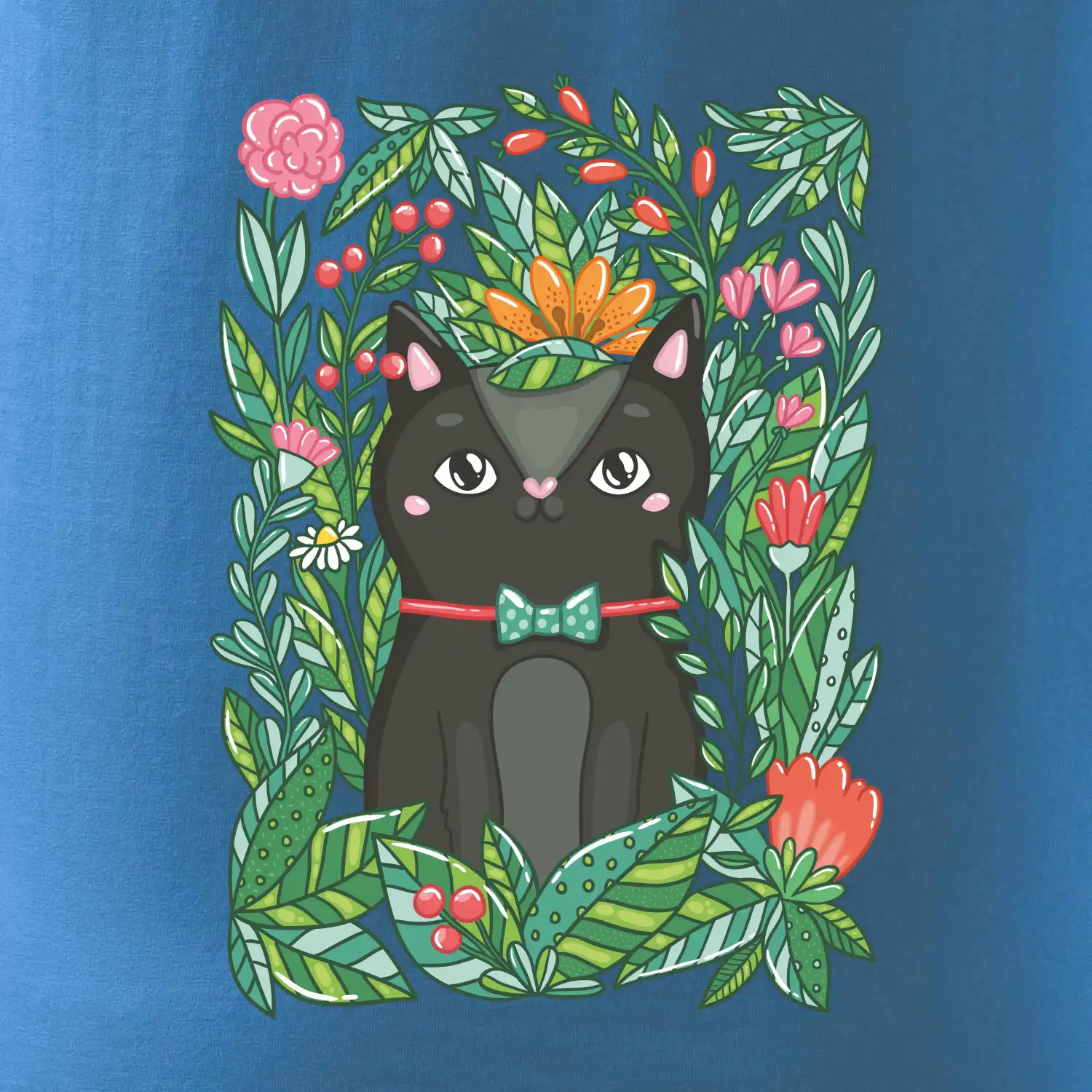 Mačka s kvetmi maľované