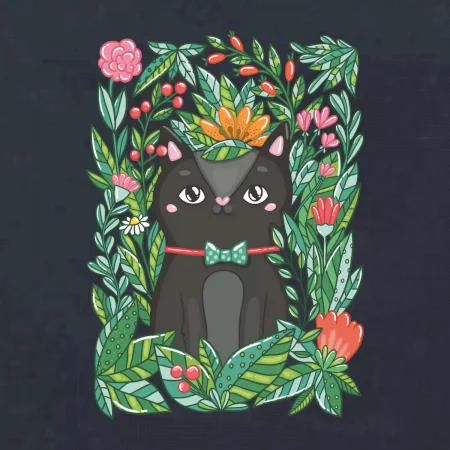 Mačka s kvetmi maľované