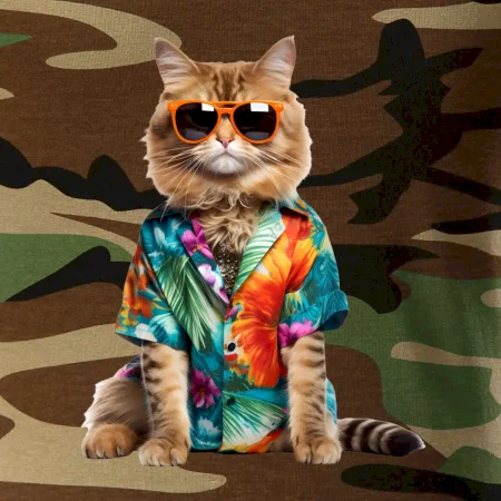 Tričko strednej gramáže vo farbách camouflage. Strih s bočnými švami. Lem priekrčníku z rebrového úpletu s prídavkom 5% elastanu. Vnútorná časť zadného priekrčníka začistená páskou vo farbe camouflage.