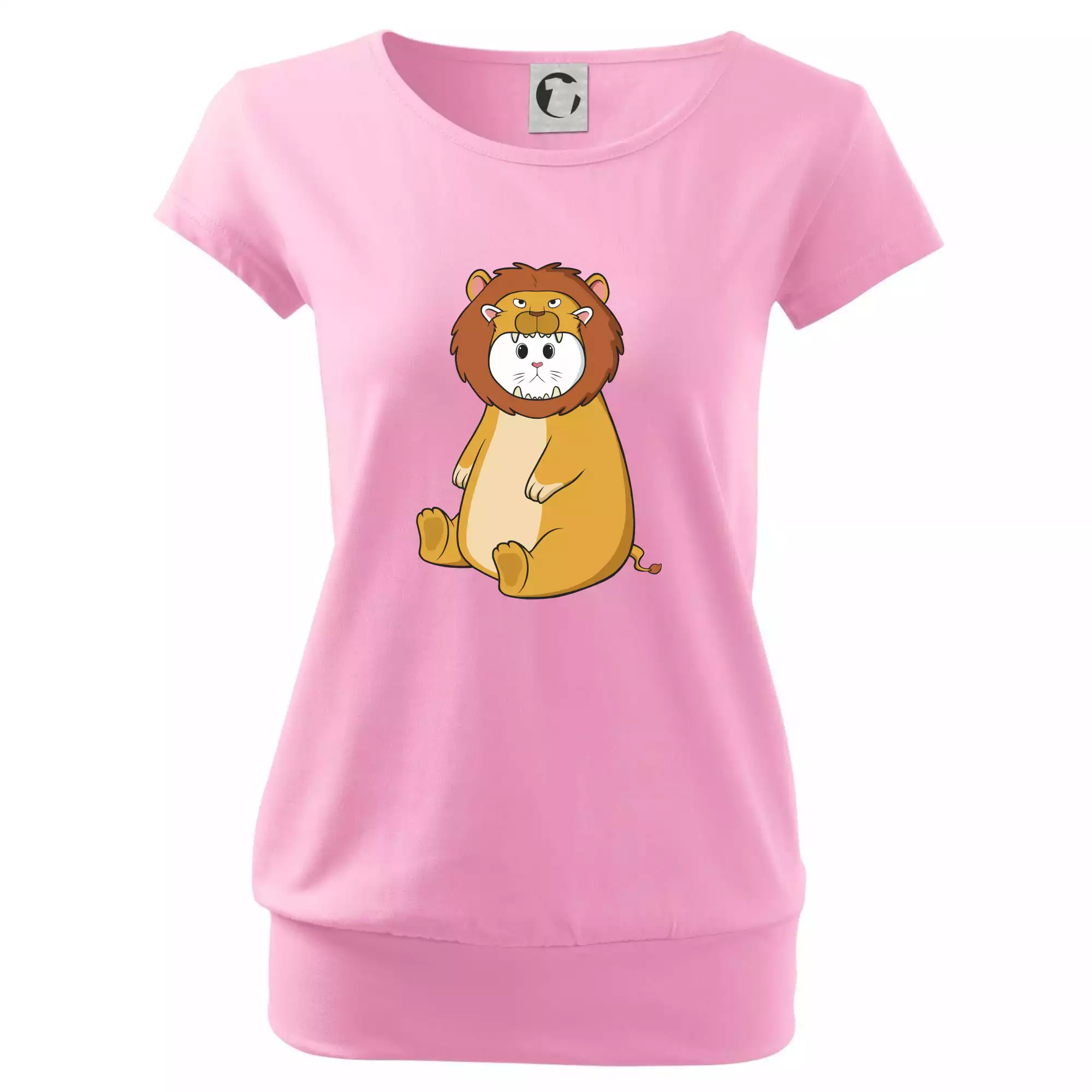 Trendové dámske tričko s veľmi krátkym rukávom, voľnejšieho strihu, v dolnom kraji všité do širokého lemu. Okrúhly priekrčník s úzkym lemom zo zhodného materiálu.