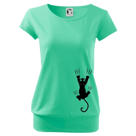 Trendové dámske tričko s veľmi krátkym rukávom, voľnejšieho strihu, v dolnom kraji všité do širokého lemu. Okrúhly priekrčník s úzkym lemom zo zhodného materiálu.