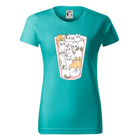 Vtipné tričko s mačkami v pohári, zábavné tričko ako darček pre kamarátku, ktorá má rada mačky.