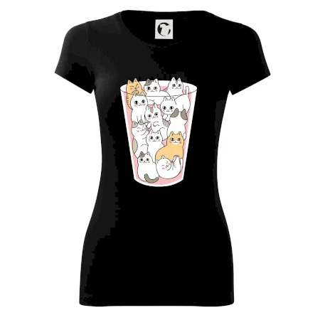 Vtipné tričko s mačkami v pohári, zábavné tričko ako darček pre kamarátku, ktorá má rada mačky.
