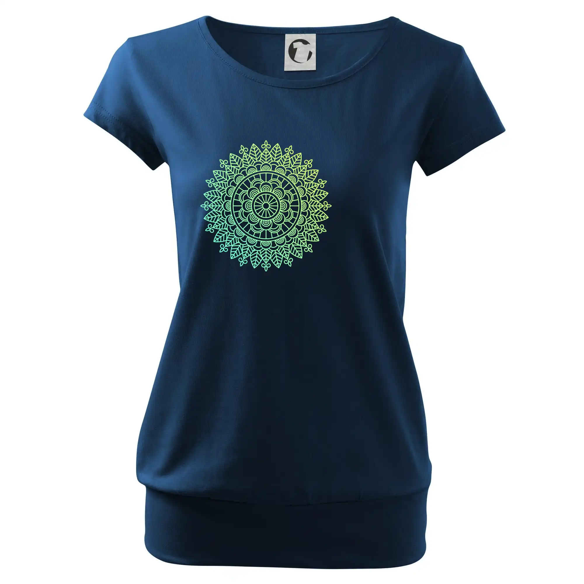Trendové dámske tričko s veľmi krátkym rukávom, voľnejšieho strihu, v dolnom kraji všité do širokého lemu. Okrúhly priekrčník s úzkym lemom zo zhodného materiálu.